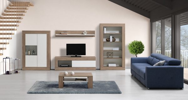 Dê vida á sua Sala de Estar com a Linha Madrid , acabada em Nogal/Branco Mate , proporcionando um visual Leve e Bonito como resultado.